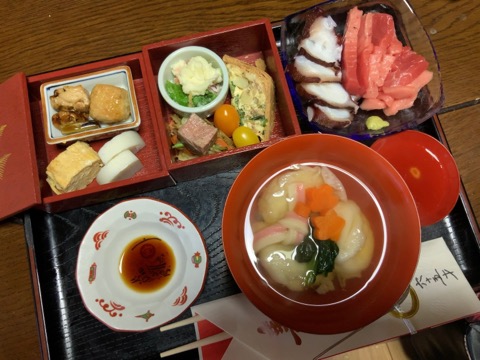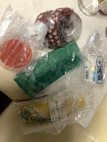 本家から正月用のマグロとかタコとか蒲鉾が届きました。