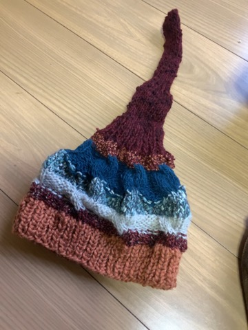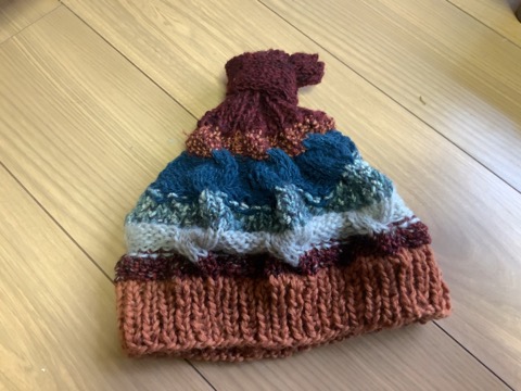 相変わらずセーターを編んでいるのですが、行き詰まって、帽子を編んでしまいました。