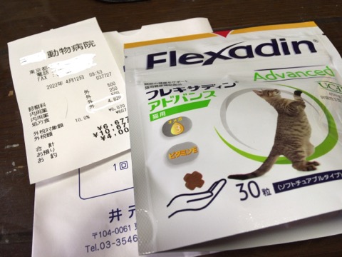 前足が少しぐらつくので、フレキサディンというサプリを処方されました。