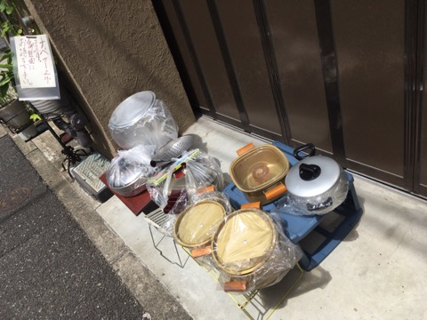だんだんお客様も来なくなるだろうし、巨大な鍋は不要だなあと思い、家の前で持ってけ露店を開催しました。
