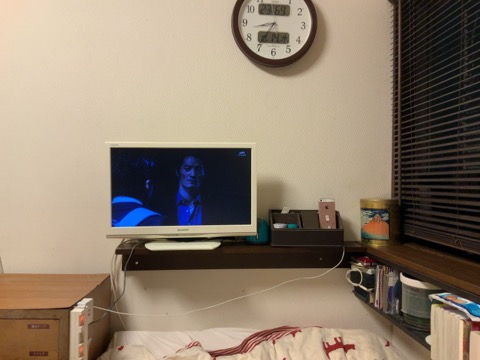 寝室にテレビ用の棚付けました。