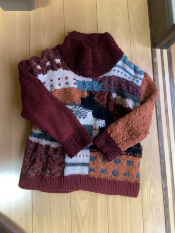 前に編んだ大きすぎるセーターを着られるサイズに直したり、