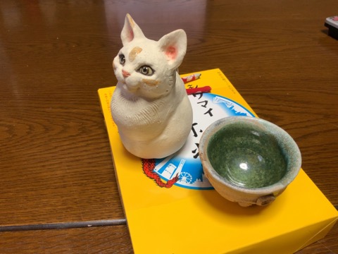 晦日に吉田猫の展示販売に行って、土鈴と猫盃を連れ帰りました。