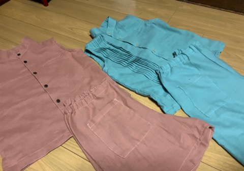 ノースリーブシャツと長めのトランクスというか短めのステテコというか、組み合わせると寝巻きにもなる部屋着を2枚作りました。