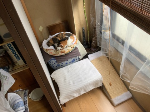 ここから寝ぼけて落ちて、しばらく乗ってませんでしたが、また寝てます。