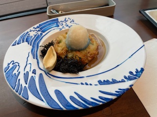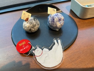 吉野ちゃんとデザートの和菓子。右がぶどう、左が柿(スパイシーでした)