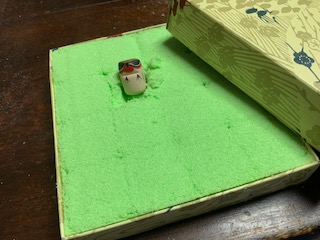 修理していた人形もなんとか終わり、今月は着物作りを始めました。