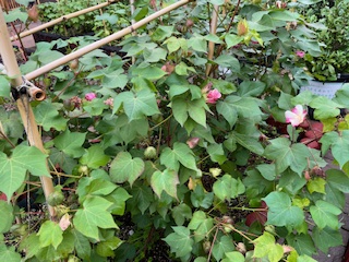 お子様たちが屋上で綿花の見学をしていましたが、雨が降りそうだったので、紡ぎ作業は室内になったみたいでした。