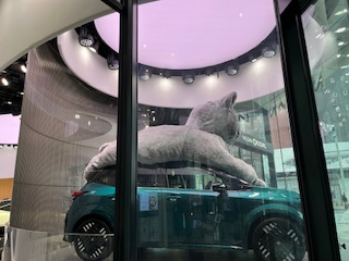日産のコーナーには3mの猫さん。