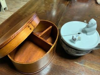 瀬戸物市で曲げわっぱのお弁当箱買って、人形町に行くとつい寄っちゃうお店で、ティサーバーと箸置き買ってしまいました。