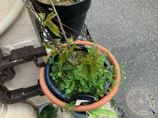 三階手すりから玄関脇に場所を変えたら、葉っぱが全て枯れ落ちてしまい、もうダメかなあと心配してたのですよ。
