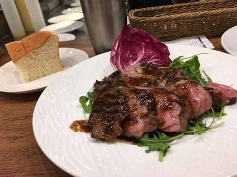 大旦那と手代さんと三人で、東京駅内でステーキの夕飯。